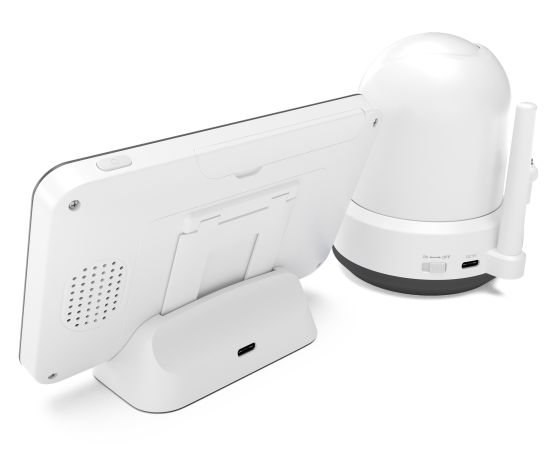 - Питание родительского блока возможно от сети или встроенного аккумулятора (разъём питания монитора USB Type-C);