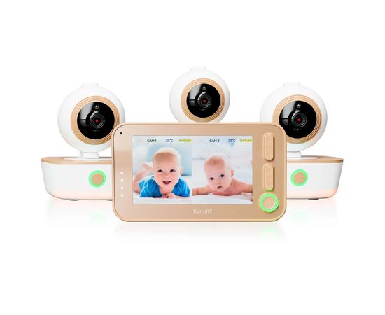 Цифровая видеоняня от известного английского производителя детских товаров высокого качества Ramili® Baby RV1300X3. Предназначена для наблюдения за ребенком на расстоянии до 300 метров. Оснащена поворотной камерой и монитором с дисплеем 10.9 см (4.3 дюйма), между которыми обеспечена надёжная и безопасная цифровая связь с системой преодоления помех. Камера располагается в детской комнате и передаёт на экран монитора видео и звук высокого качества.