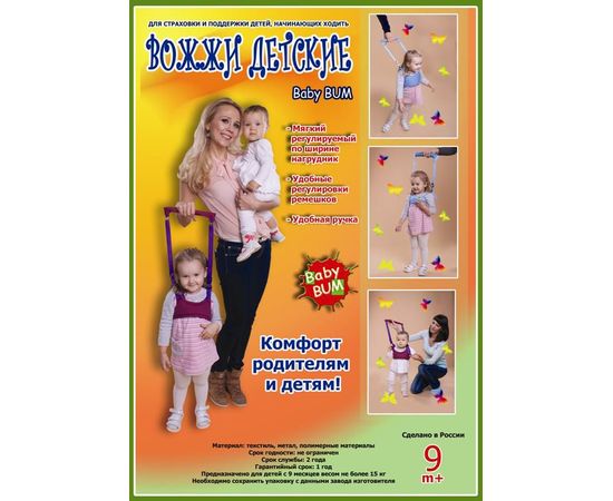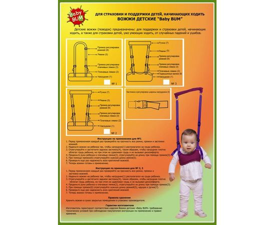 Детские вожжи (поводок) предназначены: для поддержки и страховки детей начинающих ходить, а также для страховки детей уже умеющих ходить от случайных падений и ушибов.